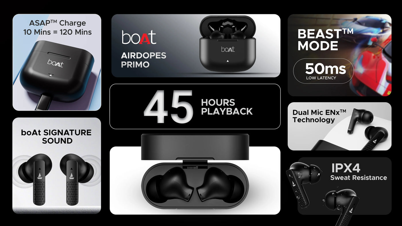 bOAt Airpodes Primo Wireless Earbuds | Active Black