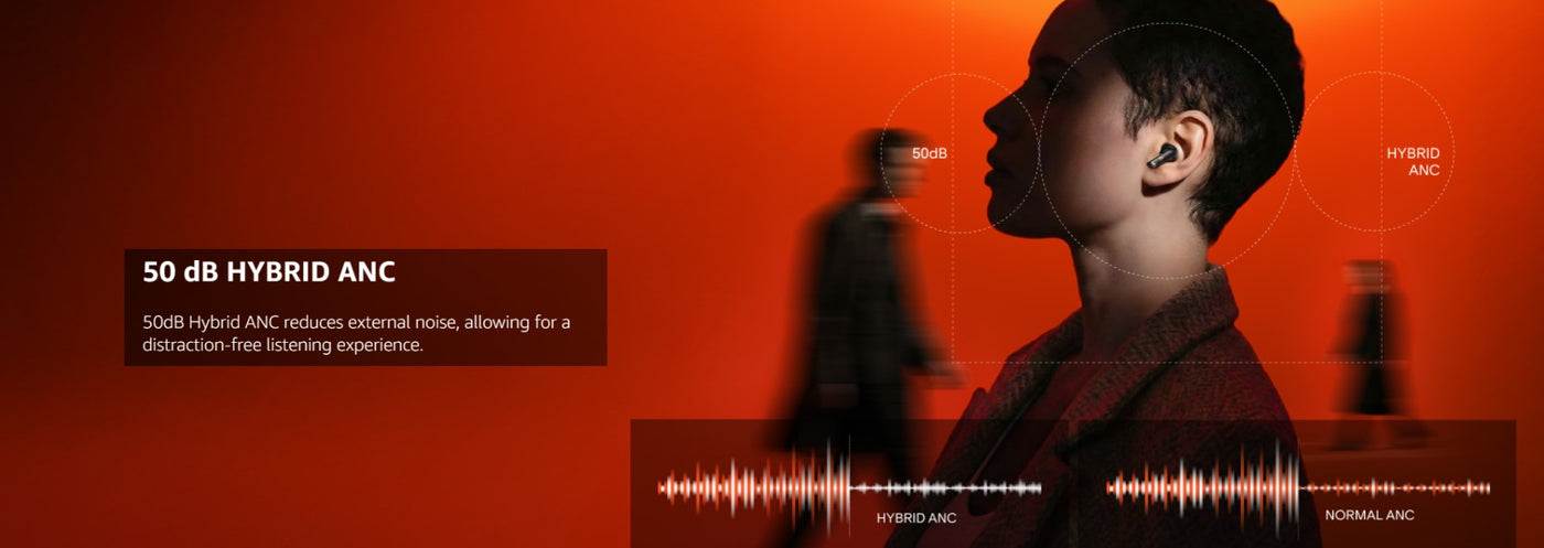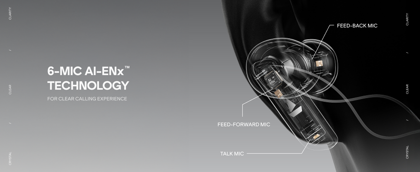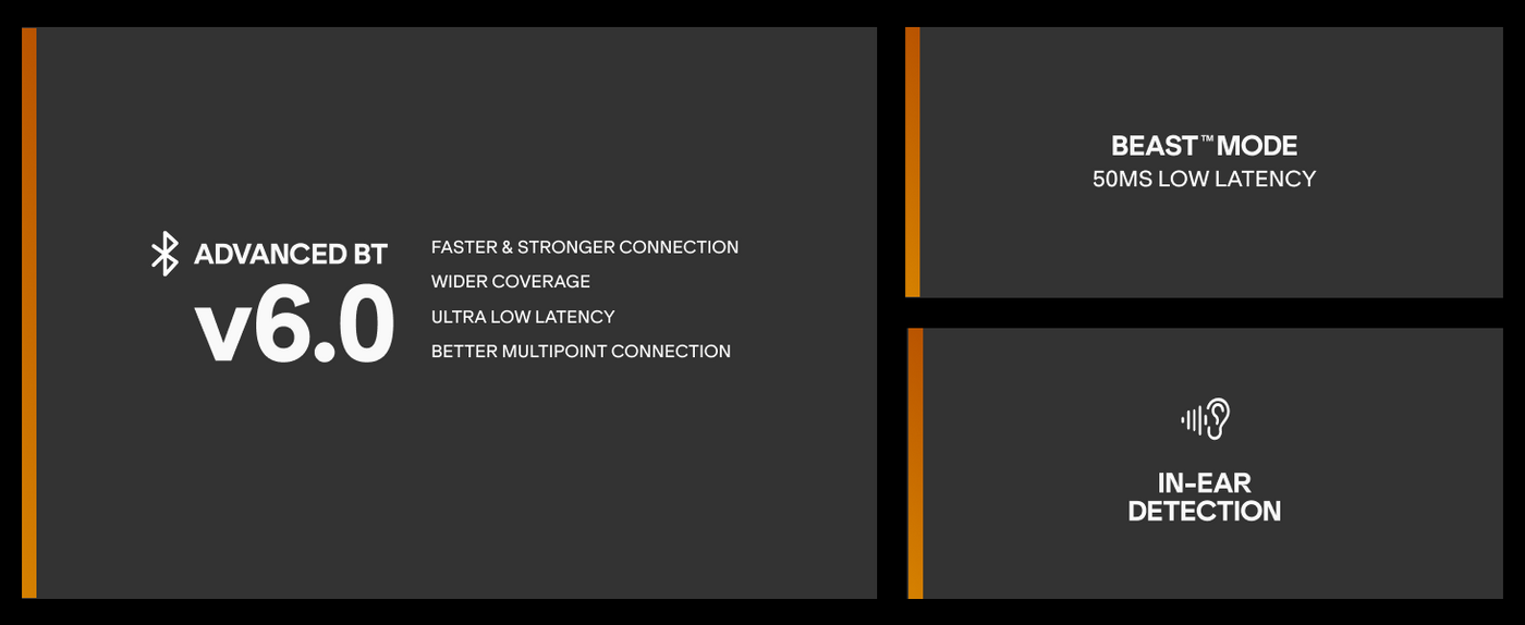 With Hybrid Active Noise Cancellation up to 50 dB and boAt Spatial Audio support, boAt Nirvana Crown blocks out ambient noise for immersive listening in busy environments. Bluetooth v6.0 with multipoint connectivity ensures fast, stable pairing with multiple devices, while six microphones with AI-ENx™ technology deliver crystal-clear calls even in noisy settings.