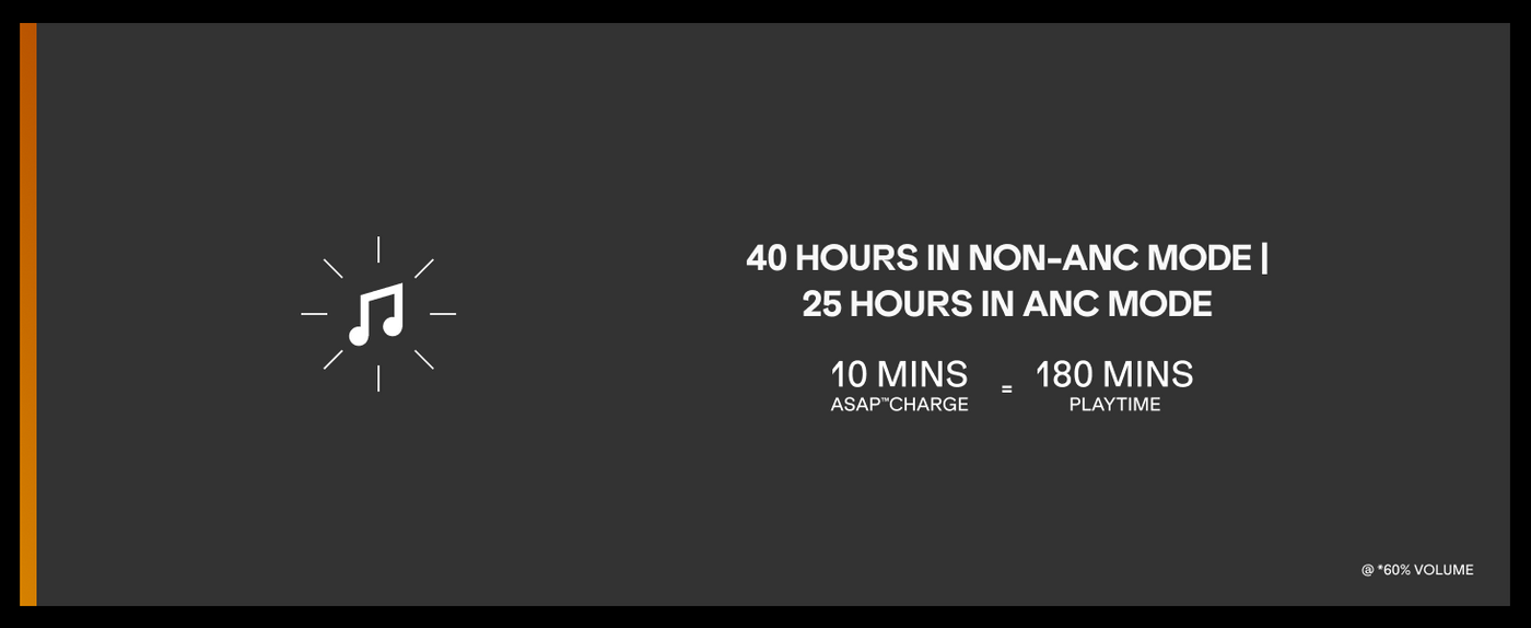 Long battery life keeps music going for up to 40 hours with the charging case, and ASAP™ Charge gives you hours of playtime from a short 10-minute boost. BEAST™ Mode offers ultra-low latency for gaming and movies, and in-ear detection automatically pauses playback when earbuds are removed. With an IPX4 rating, these earbuds handle sweat and splashes for workouts or outdoor use.