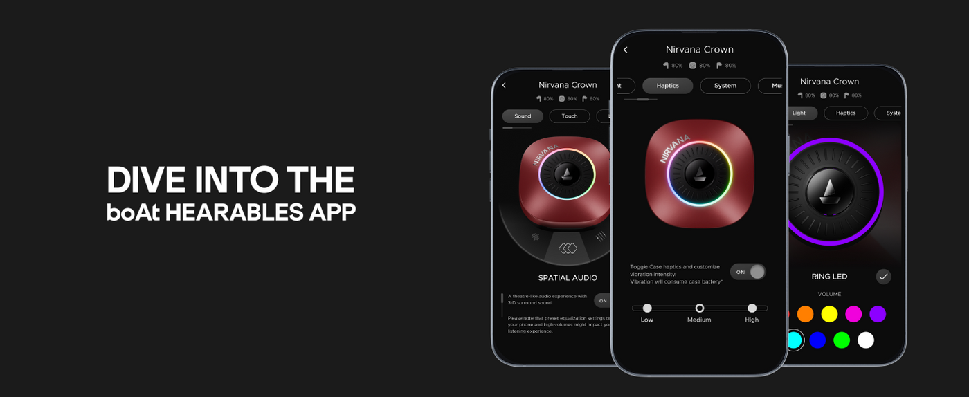 boAt Nirvana Crown are next-gen true wireless earbuds that combine cutting-edge sound, intuitive controls, and premium design for superior audio experiences. Featuring a unique Sonic A.R.C Advanced Rotational Crown on the charging case, these earbuds let you adjust volume, playback, and modes without touching your phone while enjoying rich, detailed audio.