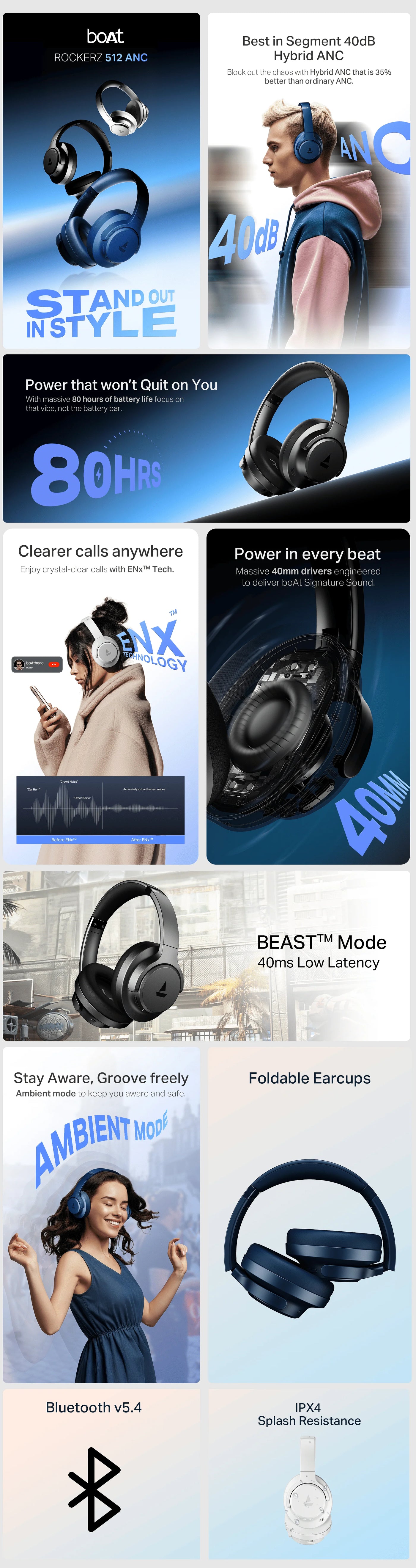 From deep-bass tunes and marathon-ready battery life to adaptable comfort and elite ANC, the boAt Rockerz 512 ANC is built to cover all your daily audio demands. Whether you're tuning into your favourite playlist, streaming a movie or gaming late into the night, these headphones deliver. Ready to elevate your listening experience?