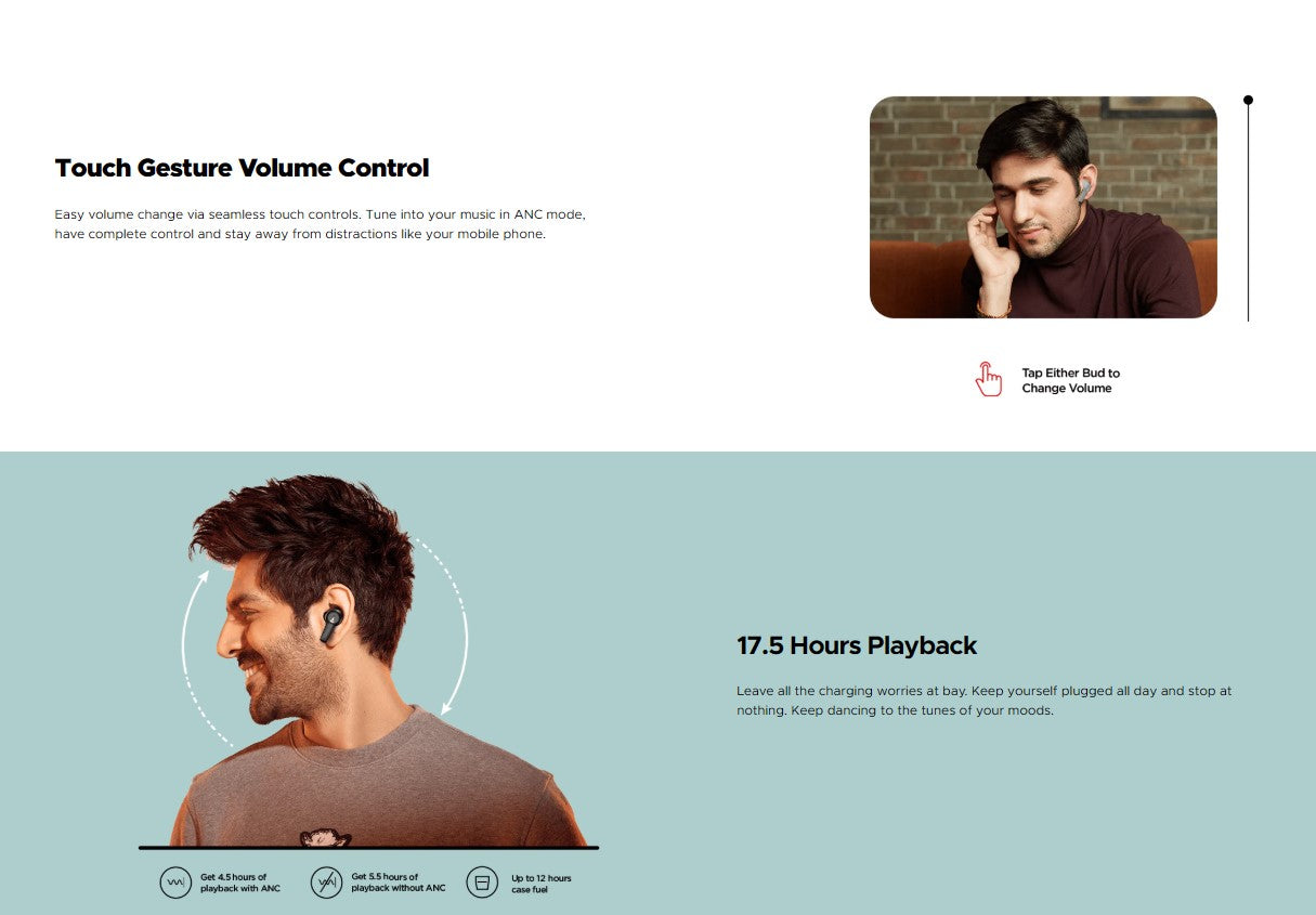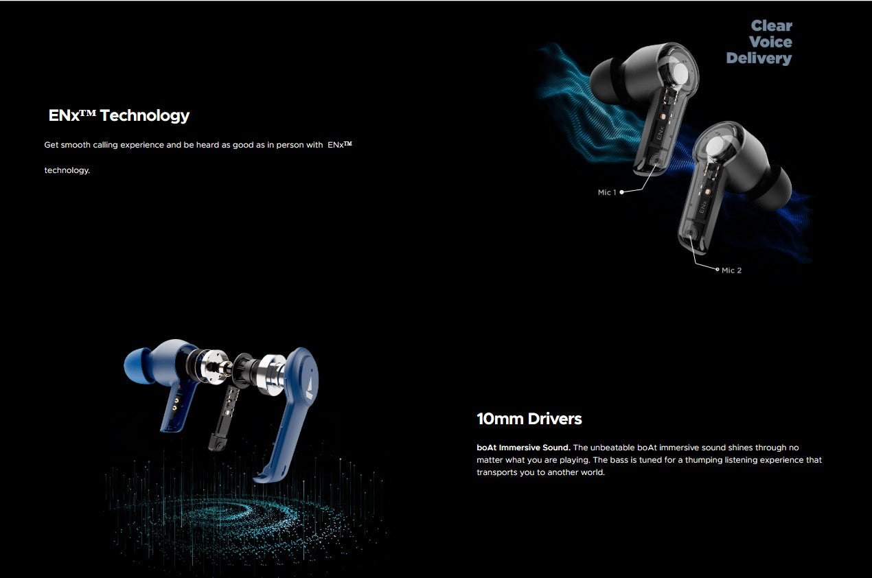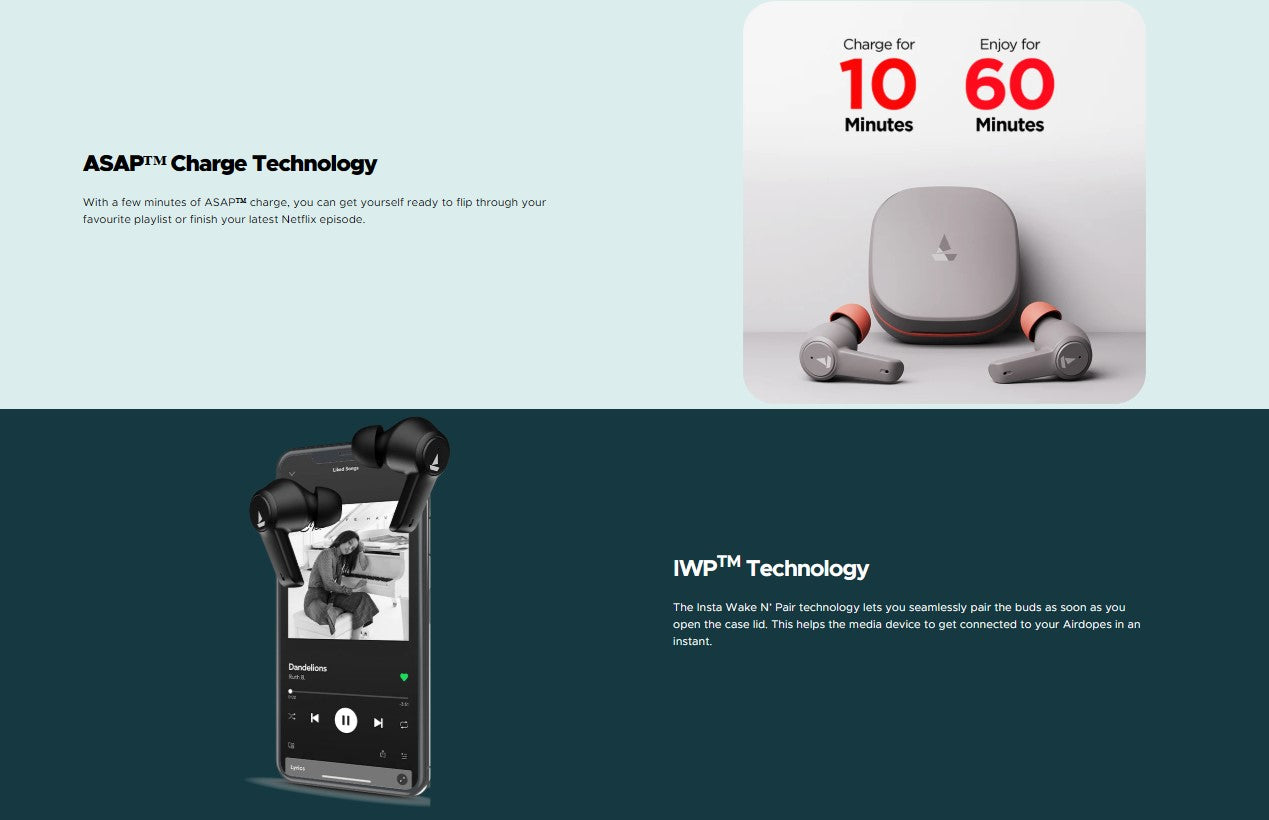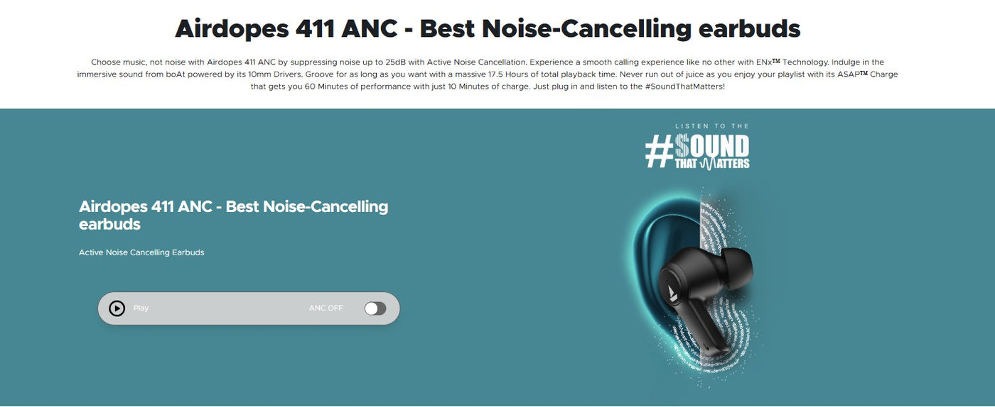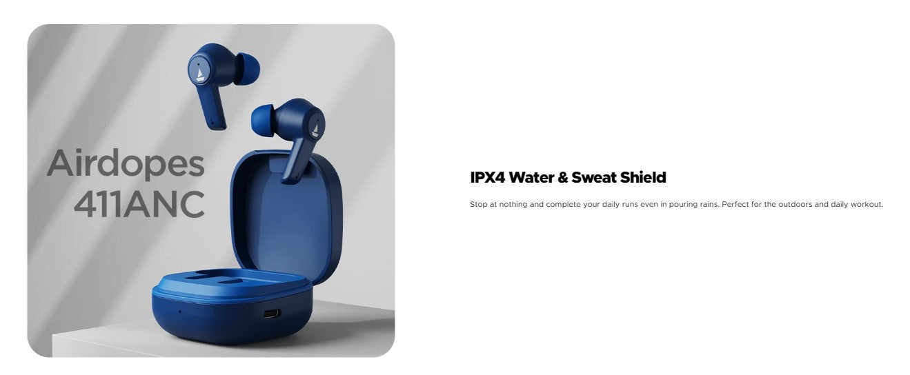 It's time to cancel all the unwanted noise, whether you are listening to tracks or communicating via voice calls. Airdopes 411ANC is here to offer up to 25dB Active Noise Cancellation as well as ENx equipped mics. The earbuds also offer the Ambient Mode for transparency related to your audible surroundings even while you are listening to your playlists; which can be of a great assistance in the crowd or traffic. Our ASAP Charge helps the earbuds to amass up to 60Min of playtime in just 10 minutes of charge. With a total playback time of up to 17.5 hours including the 5.5 hours of playtime in non-ANC mode or 4.5 hours in ANC mode, it is a perfect partner for your entertainment sessions. Courtesy the 10mm drivers, Airdopes 411ANC delivers a boAt immersive auditory experience. Our IWP tech makes it easier to power on the earbuds which occurs as soon as you open the case lid. Stay Sensational with Airdopes 411ANC.