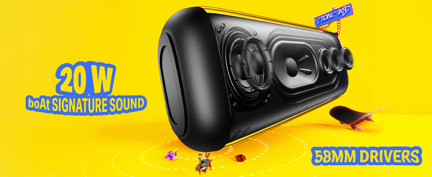 Step into the future of portable audio with the boAt Stone Arc (2025 Edition). Engineered with 20W boAt Signature Sound and 58mm drivers, this compact yet powerful speaker ensures rich bass and immersive clarity — perfect for movies, music, or gaming.