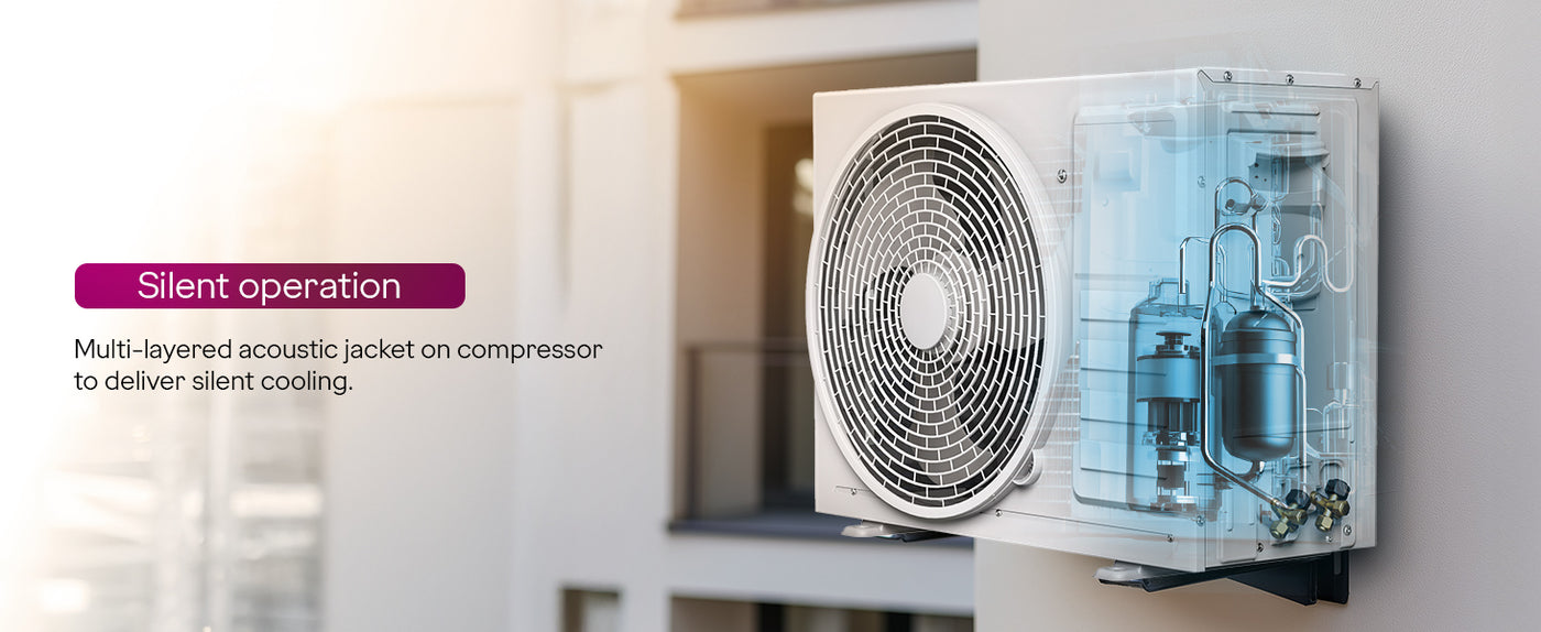 Equipped with Plasma Shield Technology and a copper condenser with anti-corrosive blue fin coating, this unit enhances heat exchange, supports durable performance, and helps maintain clean indoor airflow. The i-Sense technology intelligently detects temperature changes and adjusts cooling for stable performance, while eco-friendly R-32 refrigerant reduces environmental impact.