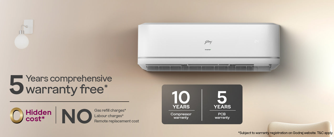 Godrej Split Inverter AC 1.6T SIC 19STC5 PZQ IOT also includes self-clean functions, auto restart, timer, and remote control for everyday convenience, along with comprehensive warranty coverage including 10-year compressor protection. Its balanced mix of comfort, smart features, and energy savings makes it a solid choice for modern homes and offices seeking reliable, efficient air conditioning throughout hot seasons.