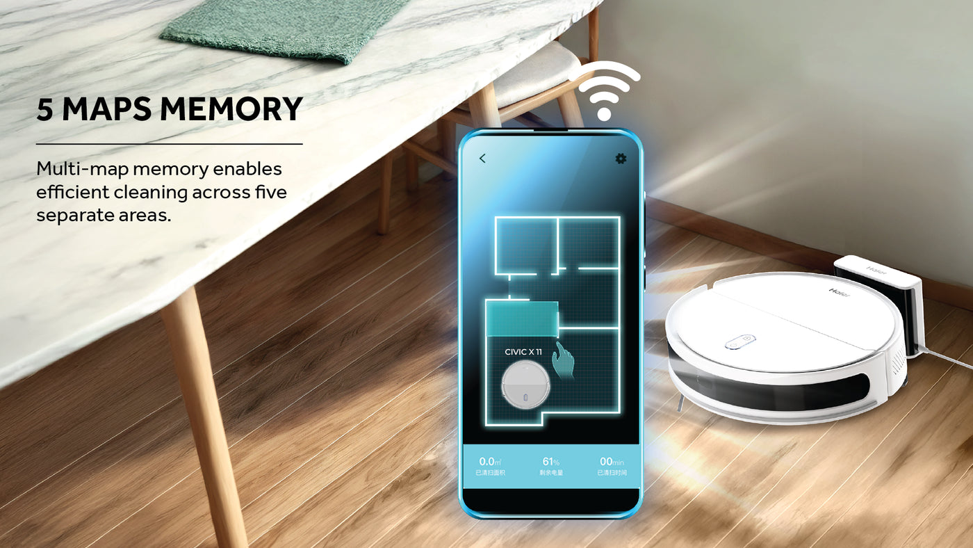 Control the CIVIC X11 effortlessly via the Haismart app, voice commands through Google Assistant or Alexa, or even your Android/Google TV. Set schedules, restricted zones, spot cleaning and more—all from your fingertips.