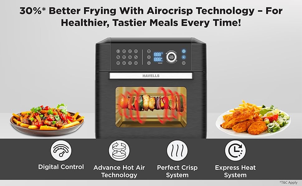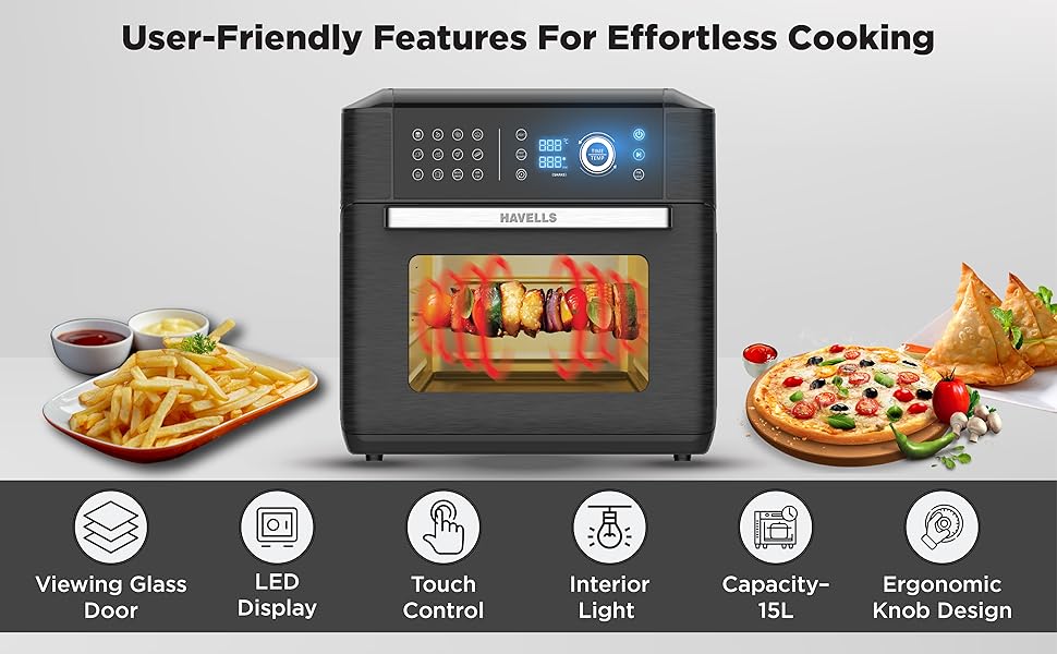 Havells Avanza Multi Function Air Fryer Oven 15L brings convenience, versatility and healthier cooking to everyday meals ensuring delicious results for a variety of dishes with ease.
