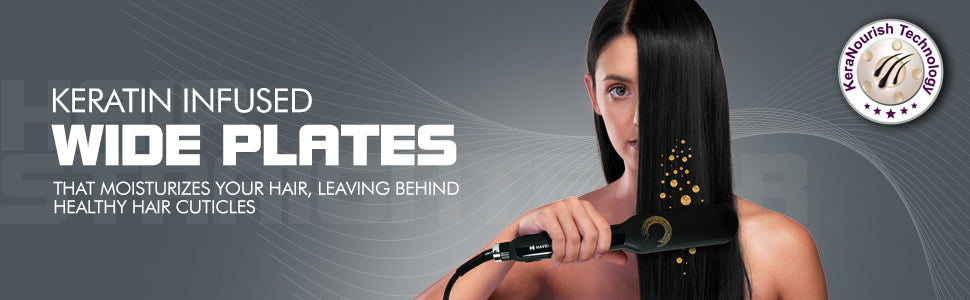 Havells HS4122 Keratin Wide Plate Hair Straightener combines professional performance, ease of use, and travel-friendly design for smooth, sleek styling results.