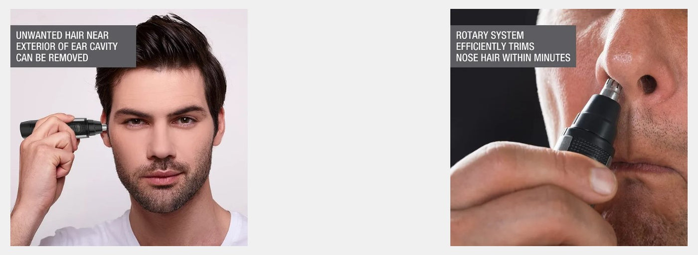 - Precision rotary head for nose & ear hair trimming