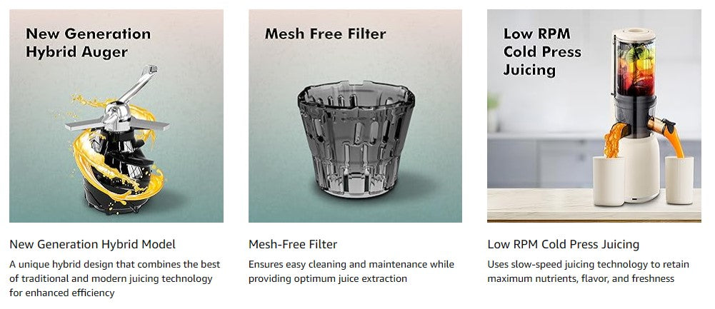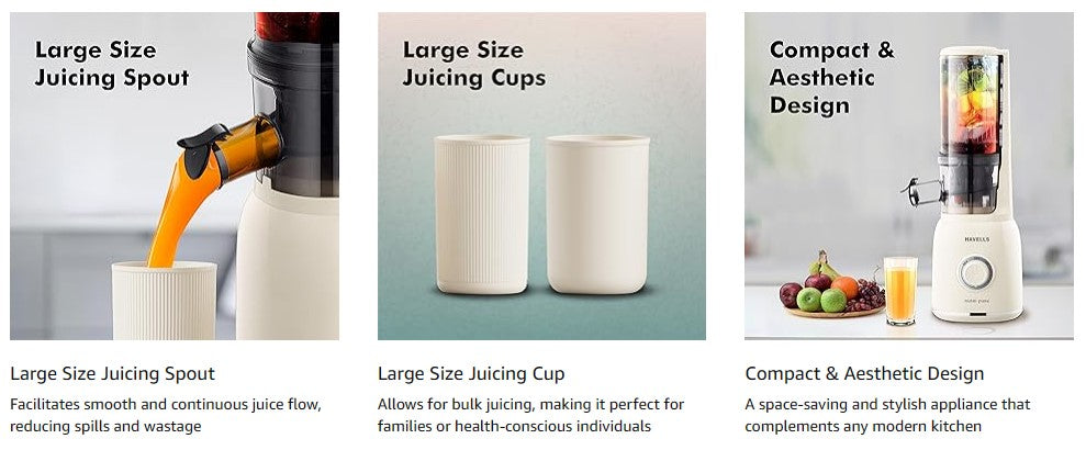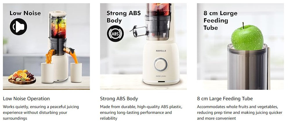 Havells Nutri Pure New Generation Cold Press Juicer is the perfect choice for health-conscious individuals looking for fresh, nutritious juice with minimal fuss.