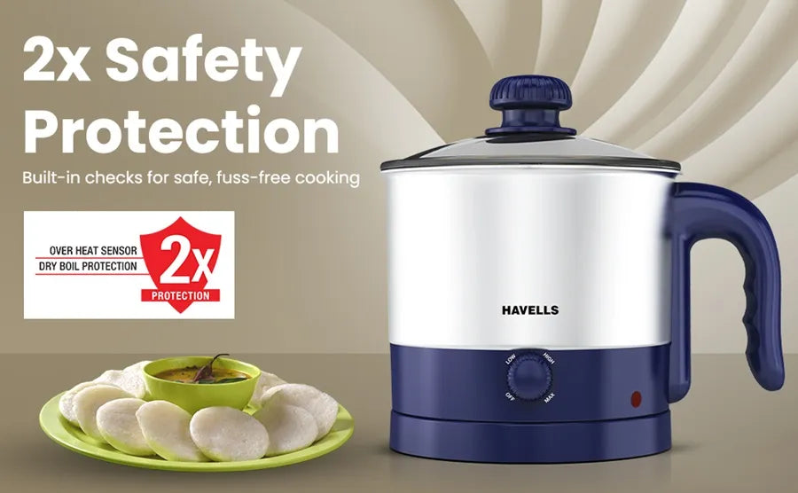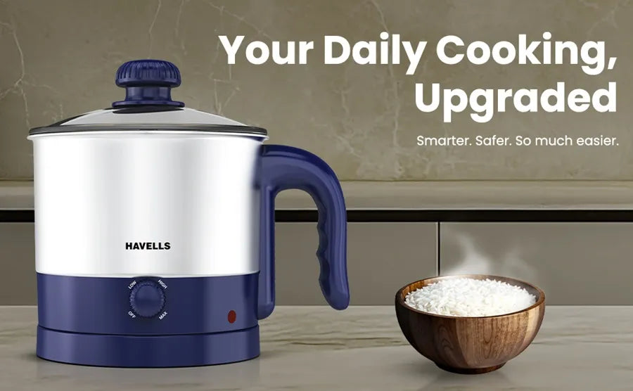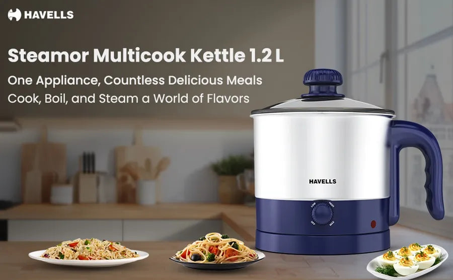 Havells Steamor Multicook Kettle makes everyday kitchen tasks quicker, safer and more convenient with its versatile multicook capabilities.