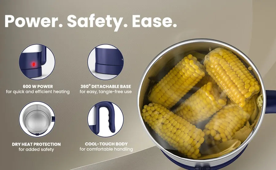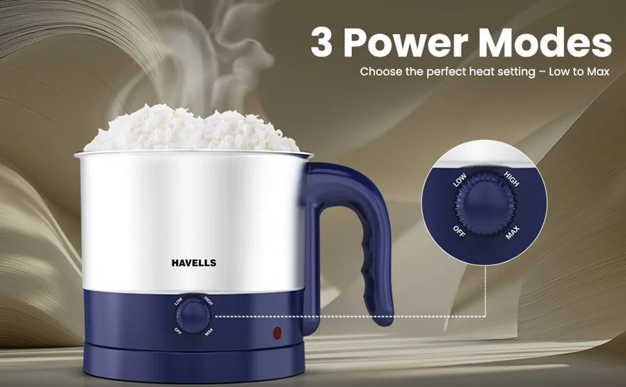 Havells Steamor Multicook Kettle is a versatile and efficient kitchen companion designed to do much more than just boil water. With advanced multicook functionality, this kettle lets you prepare soups, noodles, rice, milk and other hot beverages or dishes in one convenient appliance. Its thoughtfully engineered design combines power, performance and simplicity for everyday use.