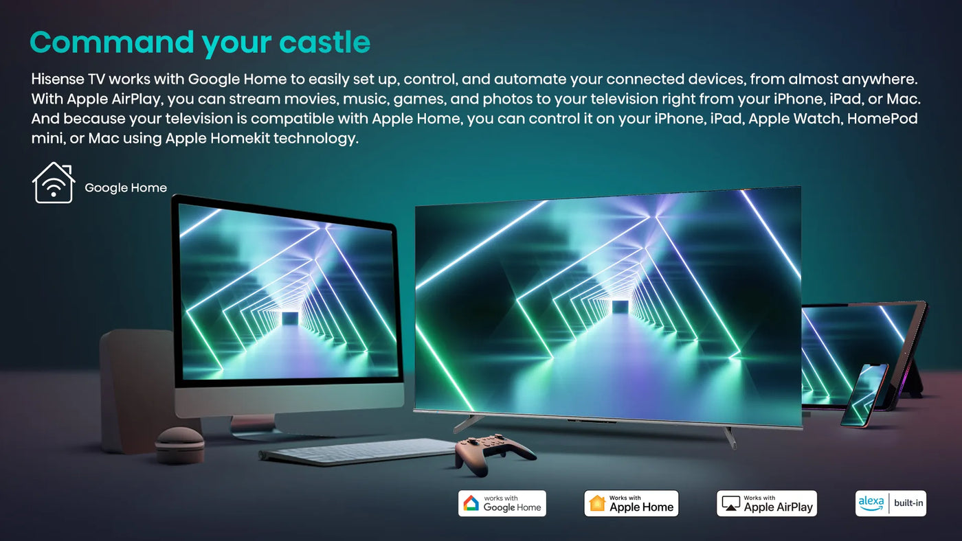 Additional Connectivity | 1 x HDMI (eARC), 2 x HDMI, 2 x USB, AV Input, Headphone Jack, Ethernet, Antenna, WiFi Dual Band, S/PDIF Output, Digital Optical Audio Output, Bluetooth |
