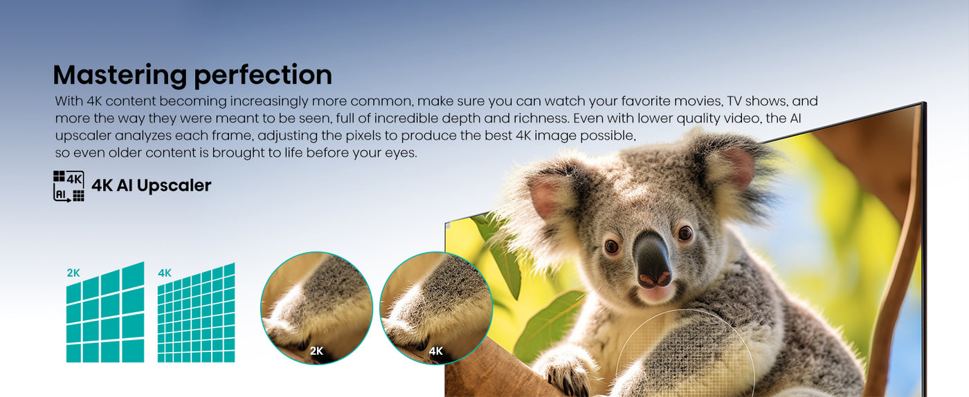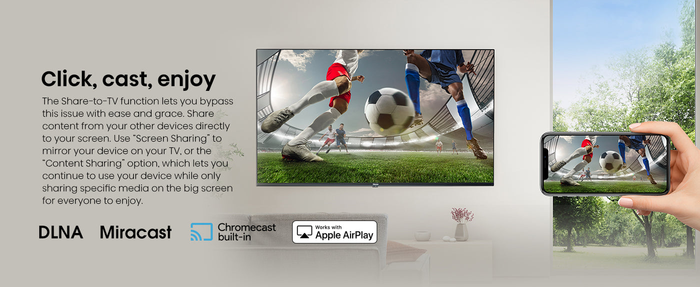 - Sound: 36W Speakers output | Dolby Atoms | Dobly Digital | Audio equalizer | Lip-sync adjustment | Multiple Sound Modes: Standard, Theatre, Sports, Music, Speech, Late Night