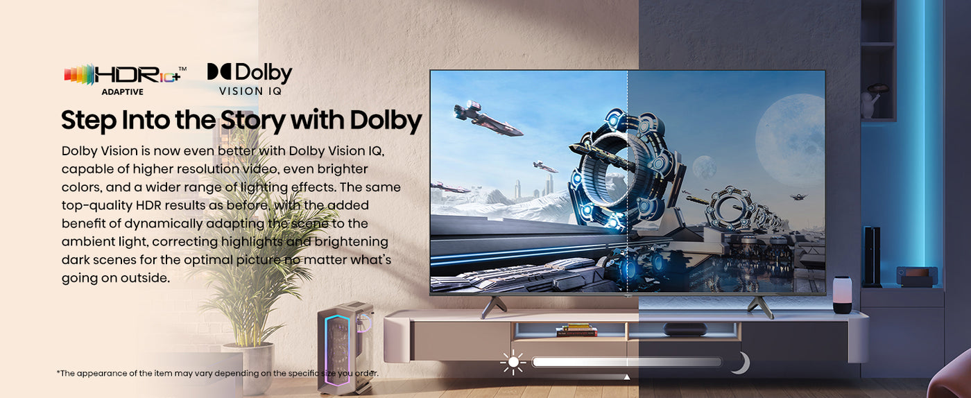 - Display: Quantum Dot Technology | Wide Color Gamut | 8 Bit + FRC Color Depth | 5000:1 Native Contrast Ratio | 500 nits Brightness | Local Dimming Technology with 256 Zones | Dolby Vision | HDR 10+ | HDR10+ Adpative | Dobly Vision IQ | 4K HDR Immersive | Filmmaker mode | Hybrid Log Gamma (HLG) | 3D Digital Comb Filter | MPEG and Mosquito noise reduction | 4K upscaling Picture Quality Enhancement
