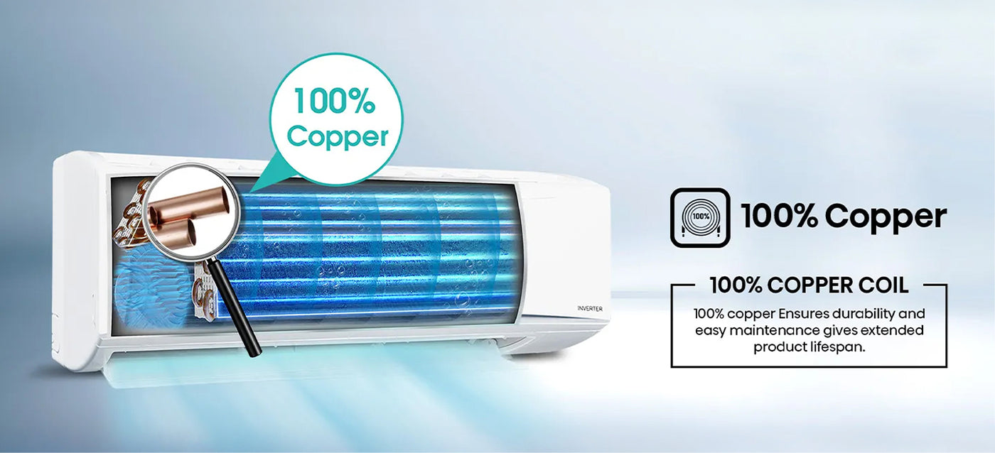 - Copper condenser coil for durability