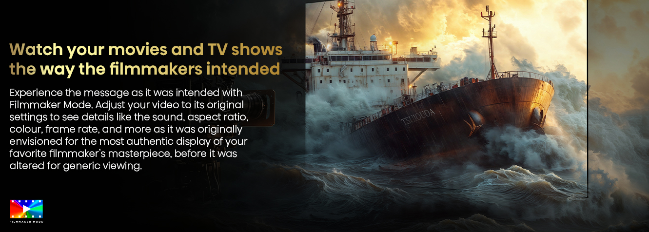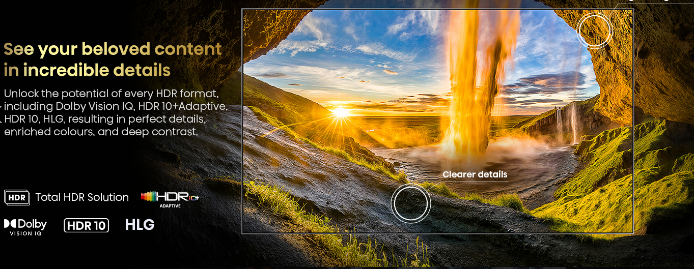 Integrated speakers deliver balanced sound with clear dialogue enhanced bass and room filling audio suitable for movies series and live sports.