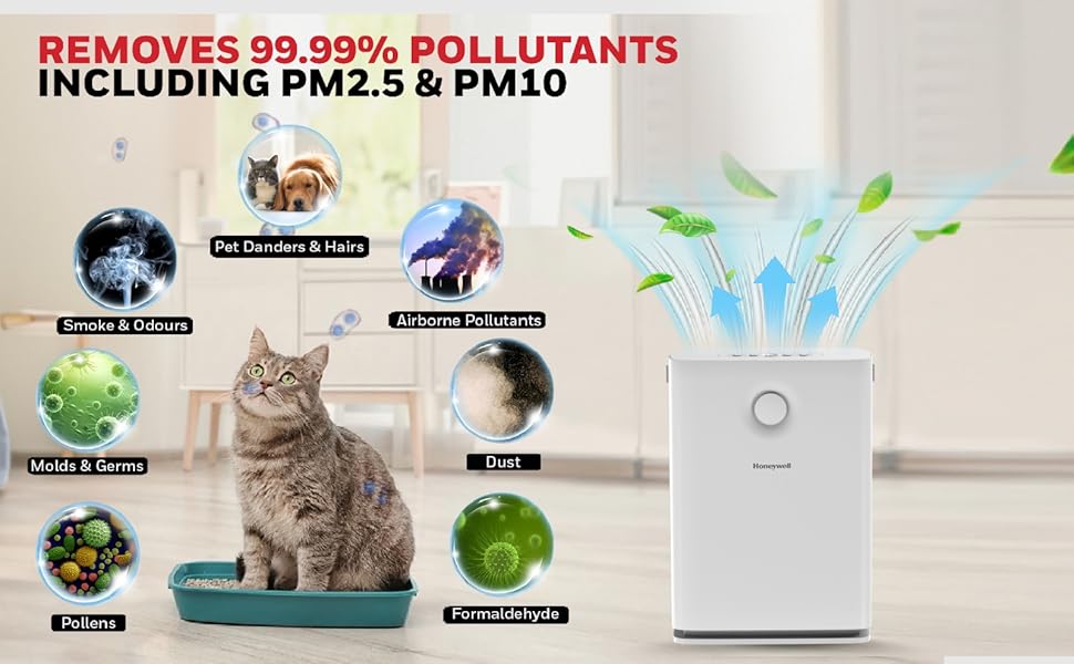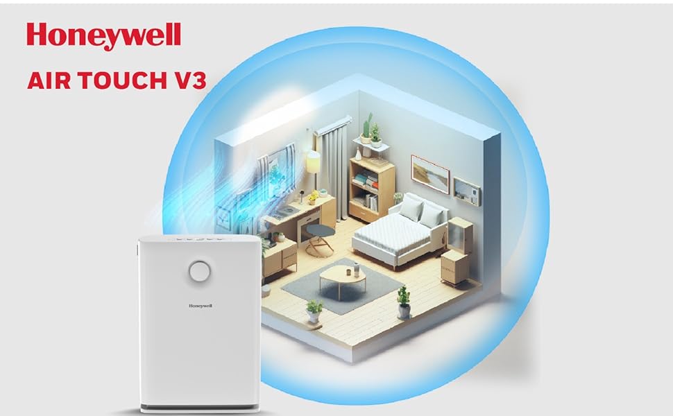 Honeywell Air Purifier for Home- 5 Stage Filtration- Covers 465 sq.ft- High Efficiency Pre-Filter- Dual HEPA Filter- Activated Carbon Filter- Removes 99.99% Pollutants & Micro Allergens - Air touch V3