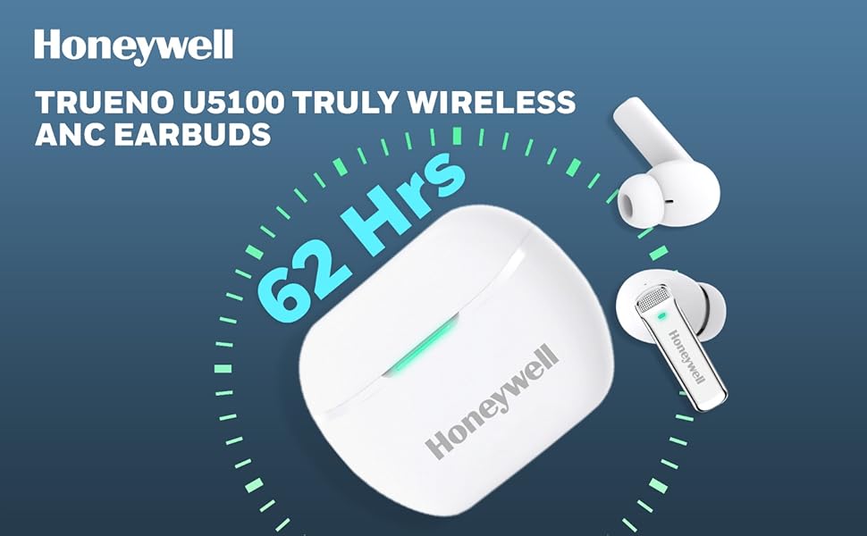 Honeywell Newly Launched Trueno U5100- in-Ear Wireless Hybrid ANC TWS Earbuds- with 33 dB ANC- Low Latency Mode- 6 mics- Bluetooth V5.2- 62 Hours of Playtime- 2 Years Manufaturer Warranty (White)