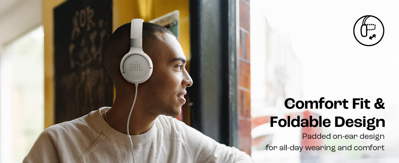 - Comfort fit and foldable design : The padded on-ear design means you can wear them all day long without discomfort. And when you’re not listening, they fold away flat for easy storage.