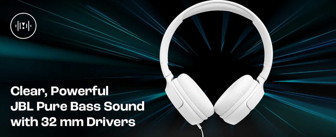 - JBL Pure Bass Sound : Hear clear, powerful JBL Pure Bass Sound from a pair of 32mm dynamic drivers