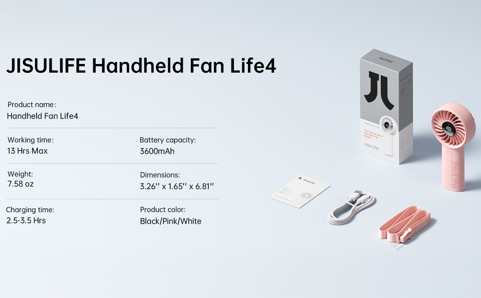 JISULIFE Handheld Fan Life4 with Powerful Motor,LED Display,3600mAh Battery,5 Wind Speeds,Lanyard; USB Rechargeable Hand held Fan; Summer Essentials Portable Fan for Travel,Beach,Makeup,Concerts