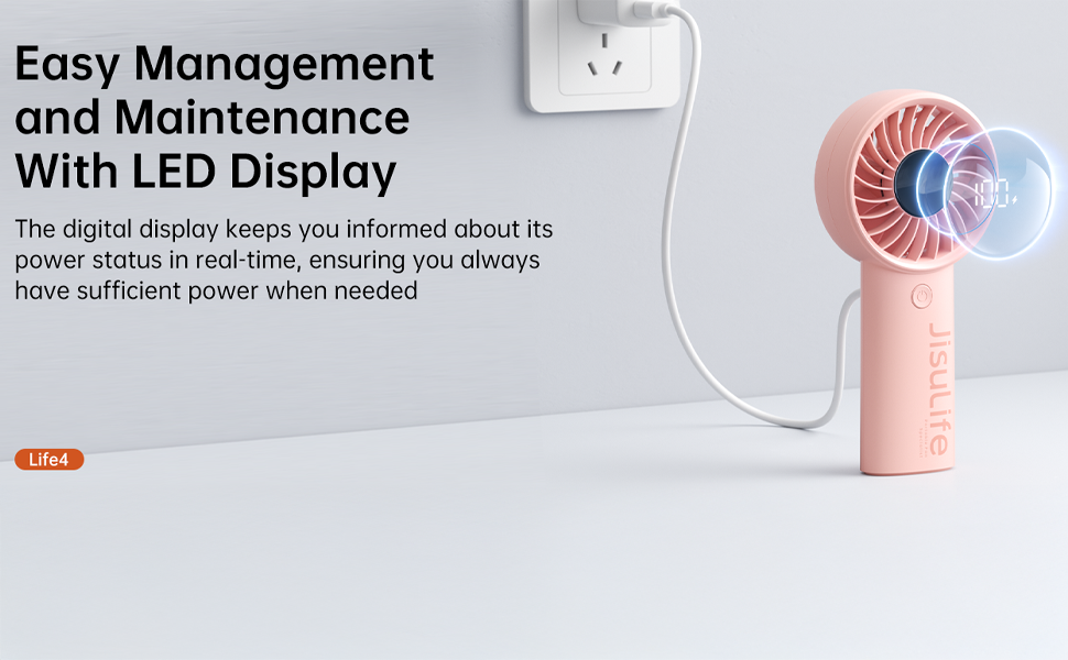 - Real-time Battery Display for Easy Management: The Hanhdled Fan Life4, features led display for your convenience in managing its power; you'll keep informed of the remaining battery, so you never have to guess if it's time for a recharge