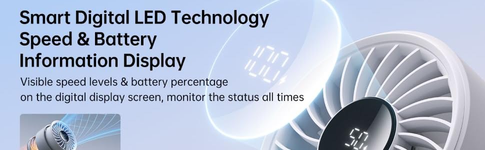 - 【Smart Display at a Glance】The easy-to-read digital display shows wind speed and remaining battery, making it a breeze to stay cool during concerts, outdoor weddings, or while applying makeup or eyelashes. This fan ensures you look your best, even on the hottest days.