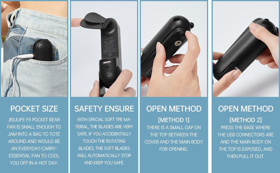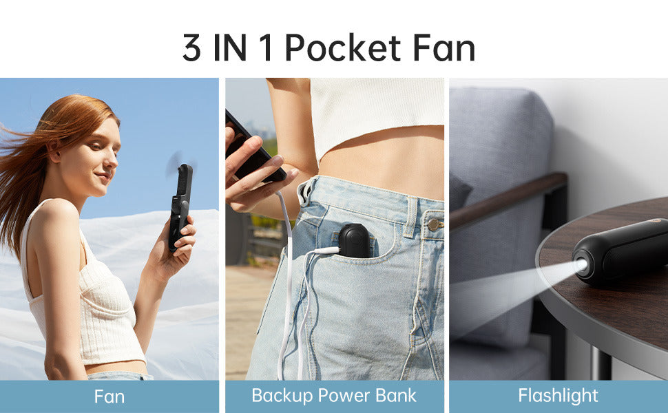- Flashlight and Include Wrist String: Long press the power button to open the flashlight feature when fan is not spinning. The flashlight is quite bright and can be useful in dark areas or if electricity is out. And with a lanyard included, you can hang it on hands or travel backpack