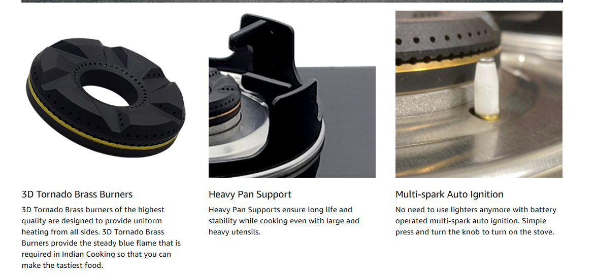 - No.of Burners : 2 X Triple Flame Burners & 2 X Dual Flame