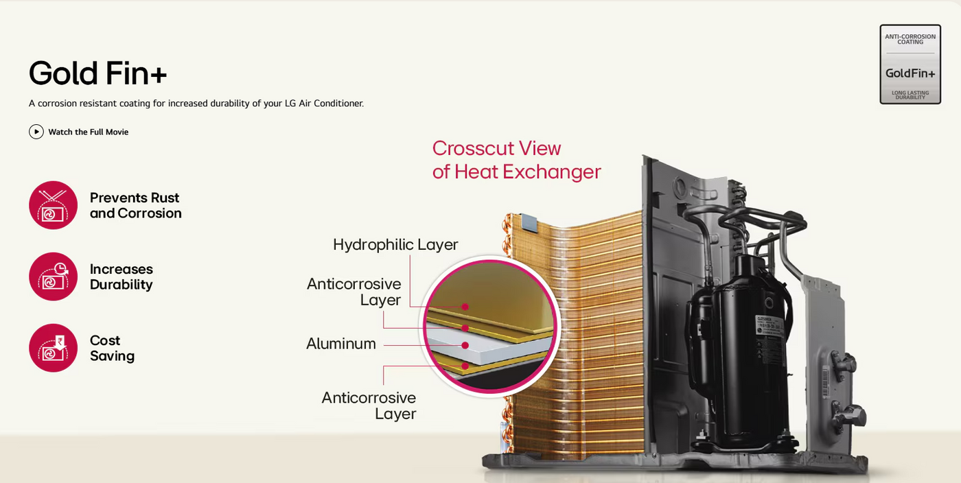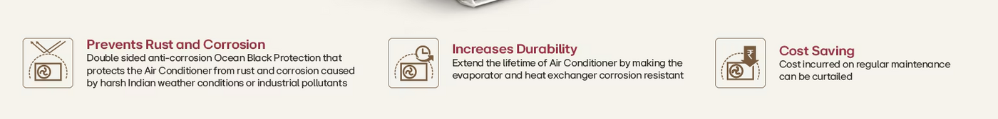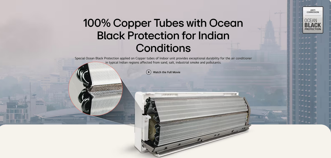 Condenser Coil: 100% Copper with Ocean Black Protection (Rust & Corrosion resistant)