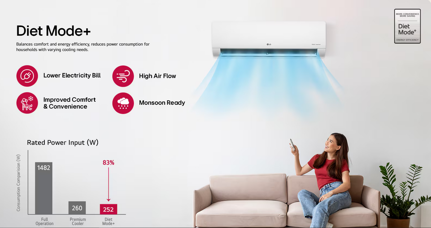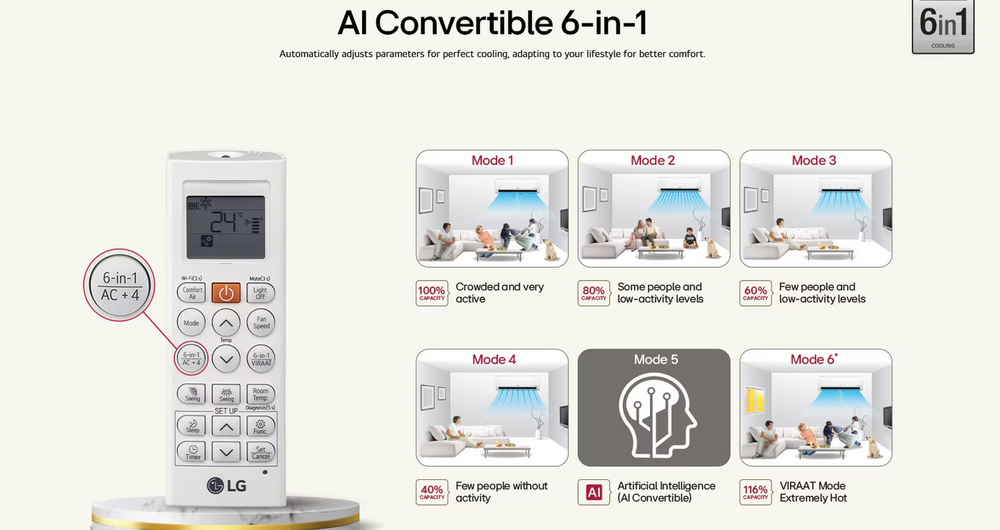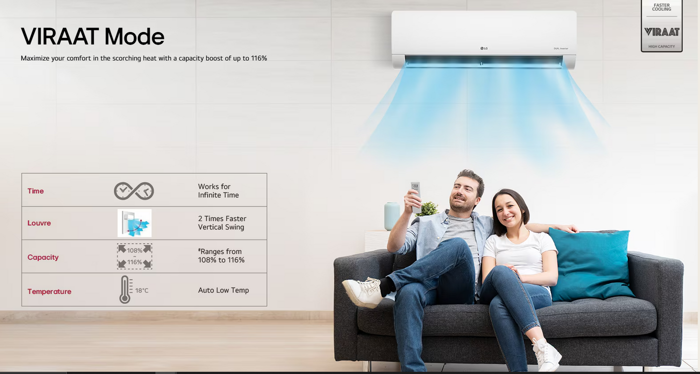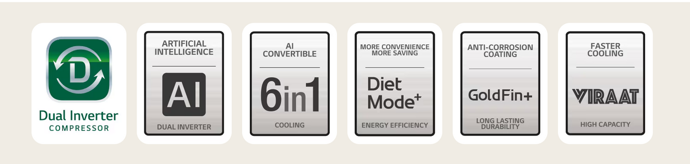LG 3 Star (1.5) Split AC with AI Convertible- 100% Copper Tubes- Diet Mode+- Gold Fin+- Viraat Mode- 2025 Model
