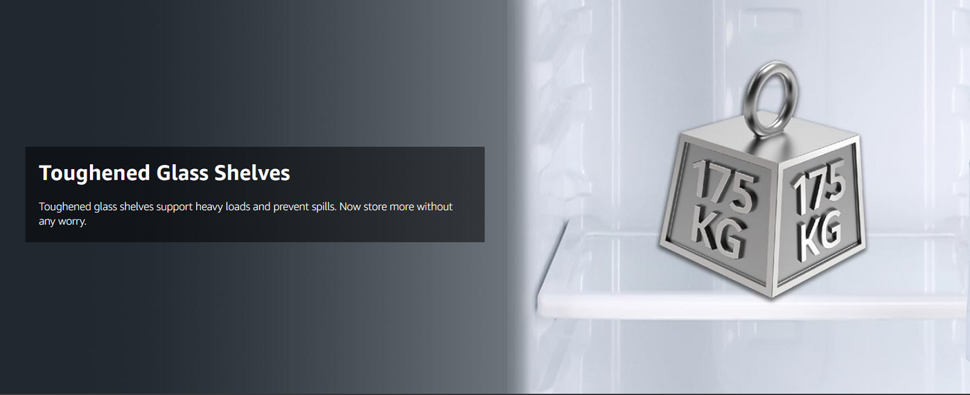 Featuring Toughened Glass Shelves, this refrigerator can carry heavy loads without spilling. This offers you the flexibility to store more food items, including store-bought groceries as well as home-cooked meals with ease.