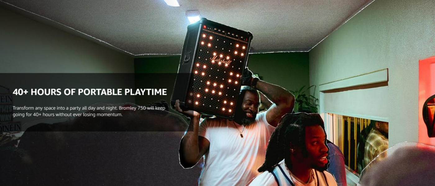 Marshall Bromley 750 is a powerful portable wireless party speaker built to deliver loud stereo sound with rich bass and clear treble for energetic events and music focused gatherings. Designed for high volume performance it ensures balanced audio output that fills large indoor and outdoor spaces with ease.