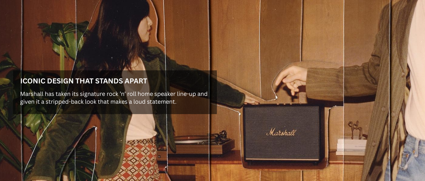 The advanced acoustic system uses upgraded drivers and rear bass reflex ports to create wider stereo separation and controlled low frequencies. Classic Marshall design elements with black finish brass accents and tactile knobs elevate modern interiors instantly.