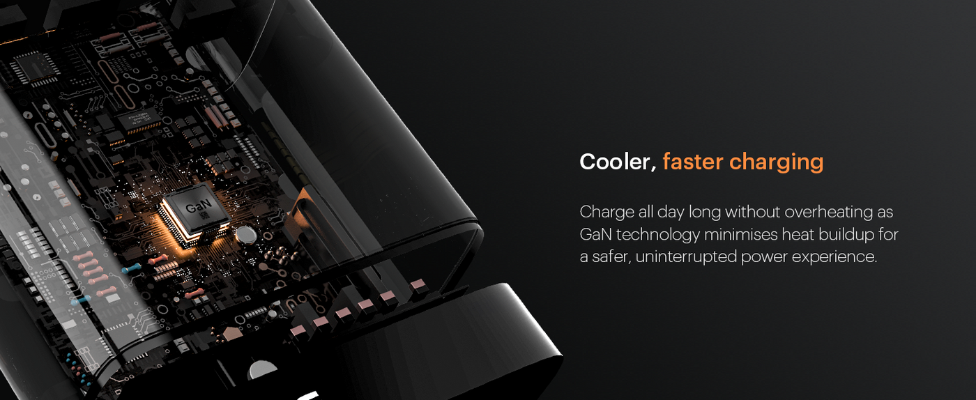 - GaN Technology: Integrated GaN technology provides a safe, high-powered, and efficient charge while minimising heat output, ensuring cooler charging.