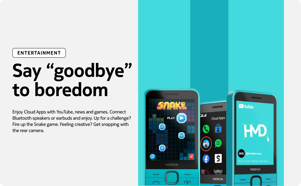- Stay entertained with the built in Wireless FM Radio, MP3 Player & the classic Snake Game.