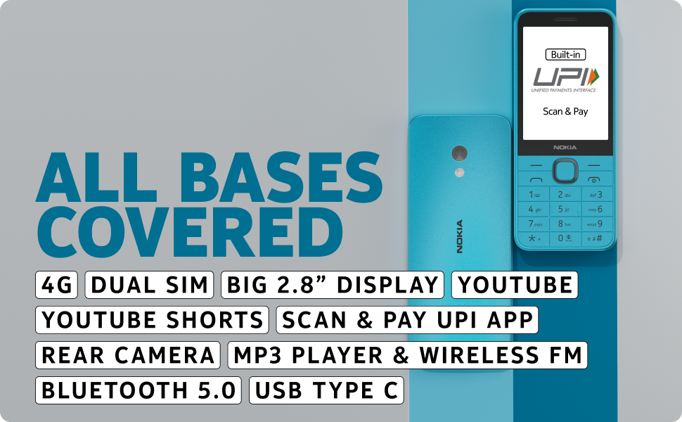 Nokia 235 4G | All-New Keypad Phone with Dual SIM, Scan & Pay UPI, Rear Camera, Wireless FM Radio, MP3 Player, Bluetooth & USB Type C