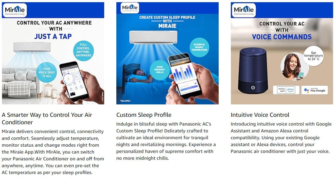 Equipped with built in Wi Fi connectivity, the air conditioner can be controlled remotely through a smartphone app, offering convenience and smart scheduling. The PM 0.1 air purification filter helps capture fine dust particles, improving indoor air quality for healthier living. A durable 100 percent copper condenser ensures efficient heat transfer and long lasting performance.