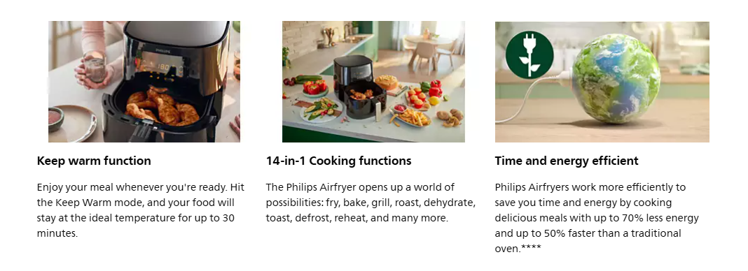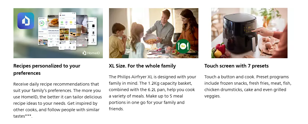 Experience the ultimate in healthy cooking with the Philips HD9270/70 Air Fryer. Its innovative Rapid Air Technology cooks food to perfection, crispy on the outside and tender on the inside. The digital touch control and easy cleaning design make it effortless to use. With a 6.2L large capacity, you can cook for the whole family without any added oil.