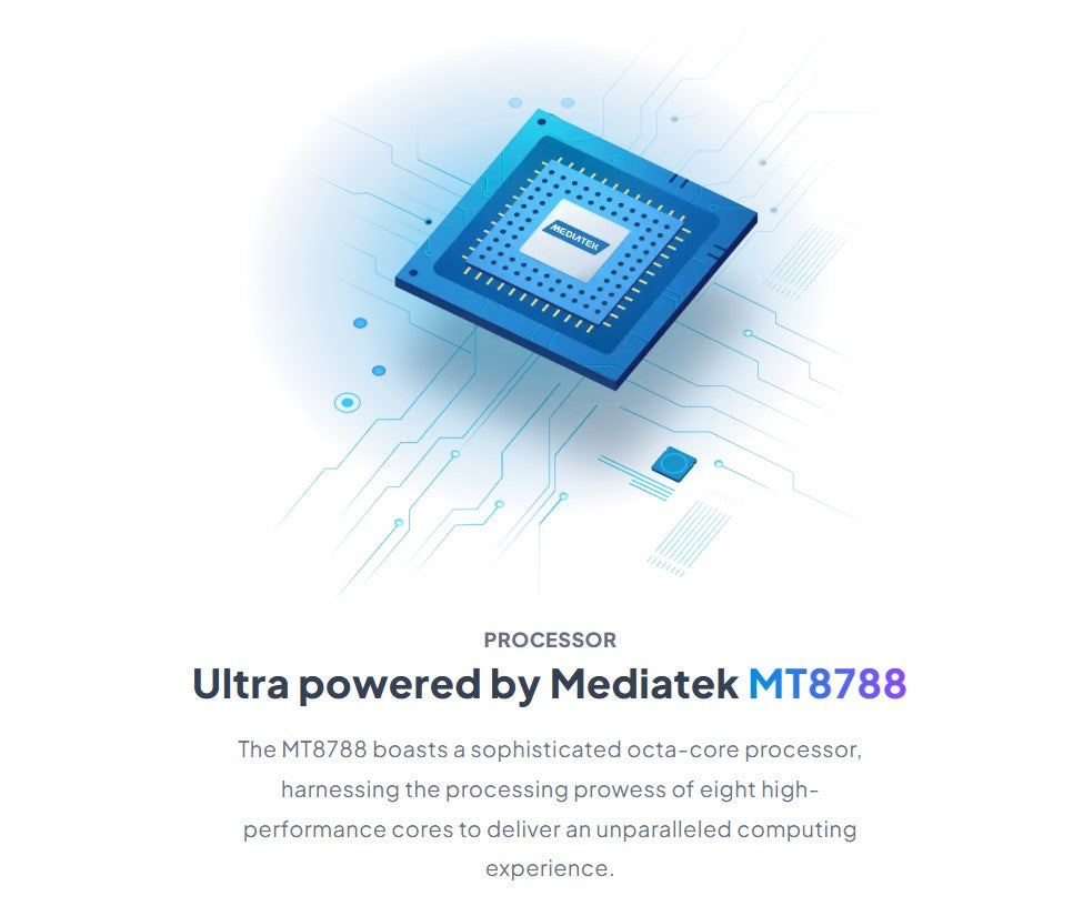 - MediaTek Power: The Mediatek MT8788 processor at 2 GHz ensures smooth multitasking, fast app launches, and efficient performance for work and play.