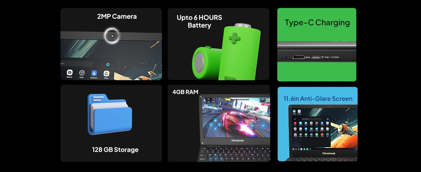 Primebook S WiFi- 2024(New) Android Based MediaTek MT8183 - (PrimeOS) Thin and Light Laptop (11.6 Inch- 1.065 Kg- Type C) (4GB/128GB eMMC Storage)