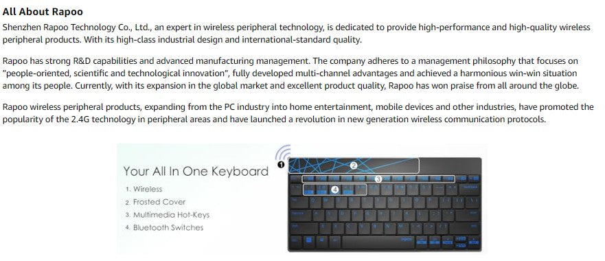 Manufacturer | Rapoo, Shenzhen RAPOO Technology Co.Limited Address: 22,Jinxiu Road East, Pingshan District,Shenzhen,China |