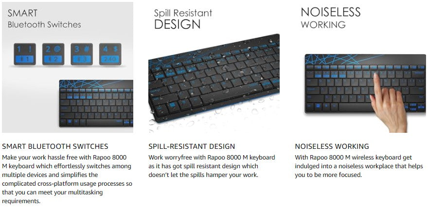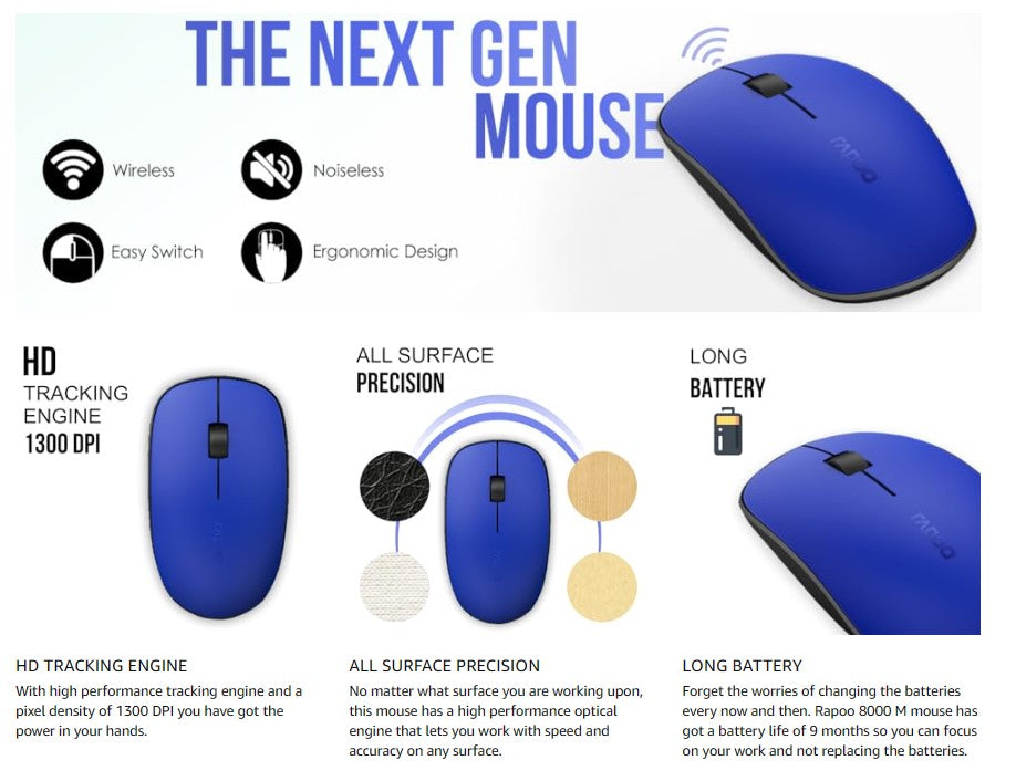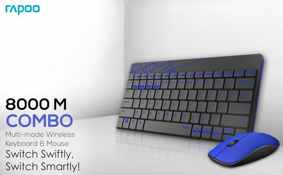 Rapoo 8000M Multi-Mode Keyboard and Mouse Set Bluetooth 3.0/4.0 Wireless 2.4 GHz 1300 DPI Combo