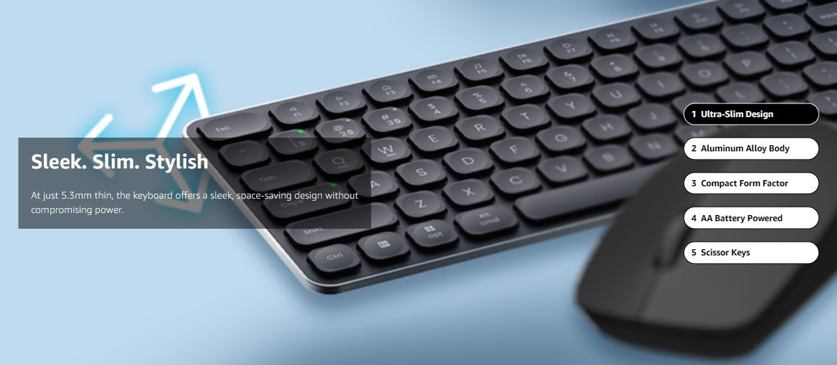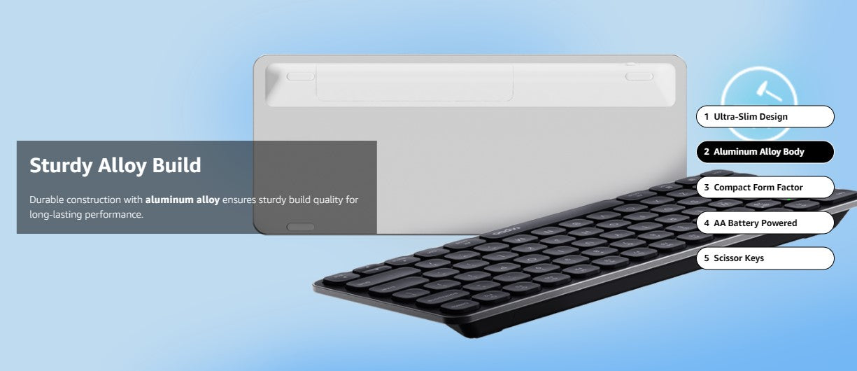 - Ultra slim & Ergonomic Design : Ultra-slim keyboard with aluminum alloy base and accurate scissor key, ultra-slim design makes this keyboard a real eye-catcher while the anodized aluminum housing offers stability and durability. The accurate scissor key structure enables easy and comfortable tactile experience.