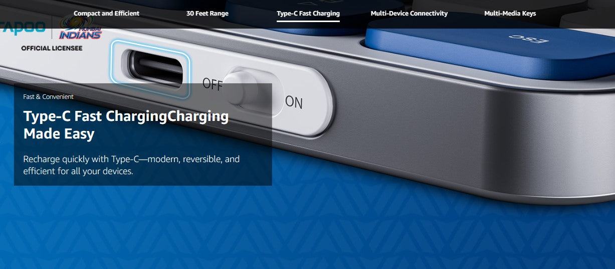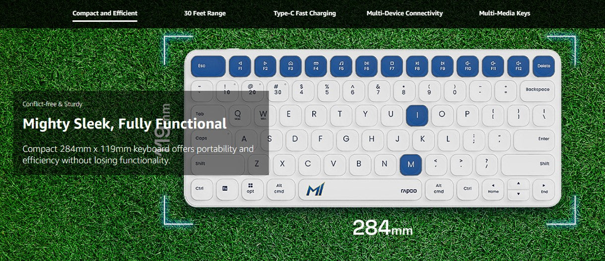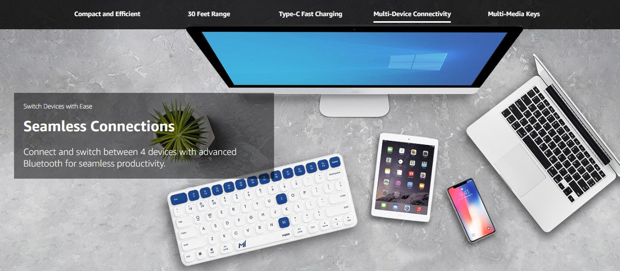 Rapoo E9050L Bluetooth Wireless Multi-Device Keyboard(4 Devices), Rechargeable, Led Indicators, Ultra-Thin, Ergonomic, Compatible with Windows, iOS, Android, Tab, Smartphones - 3-Year Warranty
