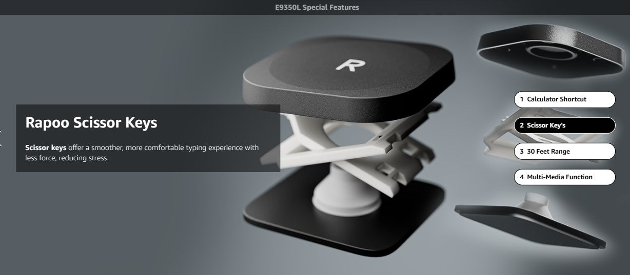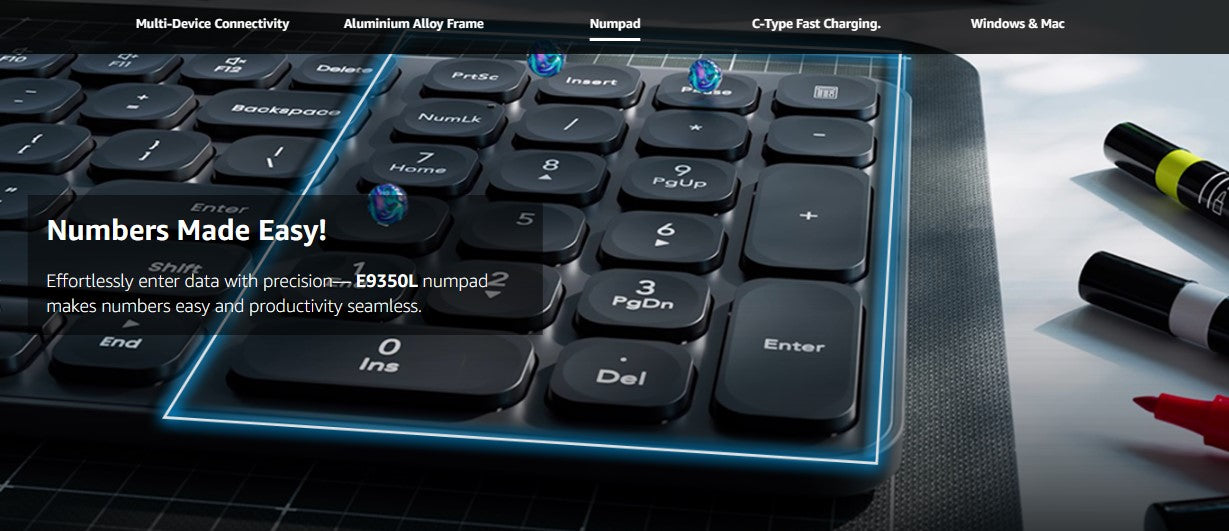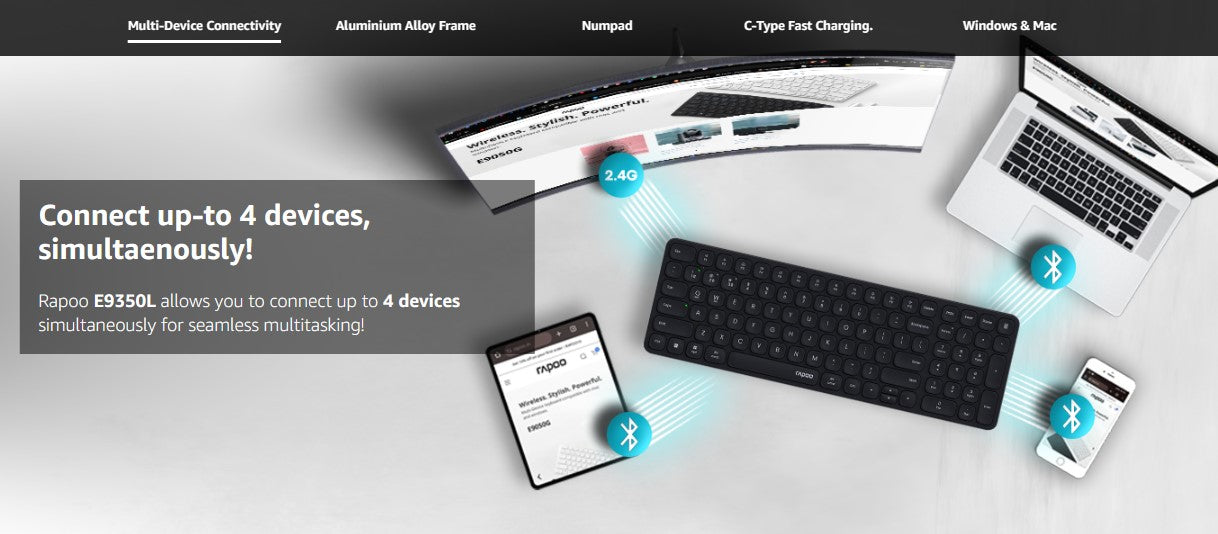 Rapoo E9350L Bluetooth Wireless Multi-Device Keyboard(4 Devices), Numpad, Led Indicators, Ultra-Thin, Ergonomic, Compatible with Windows, iOS, Android, Tablets, Smartphones - 3-Year Warranty