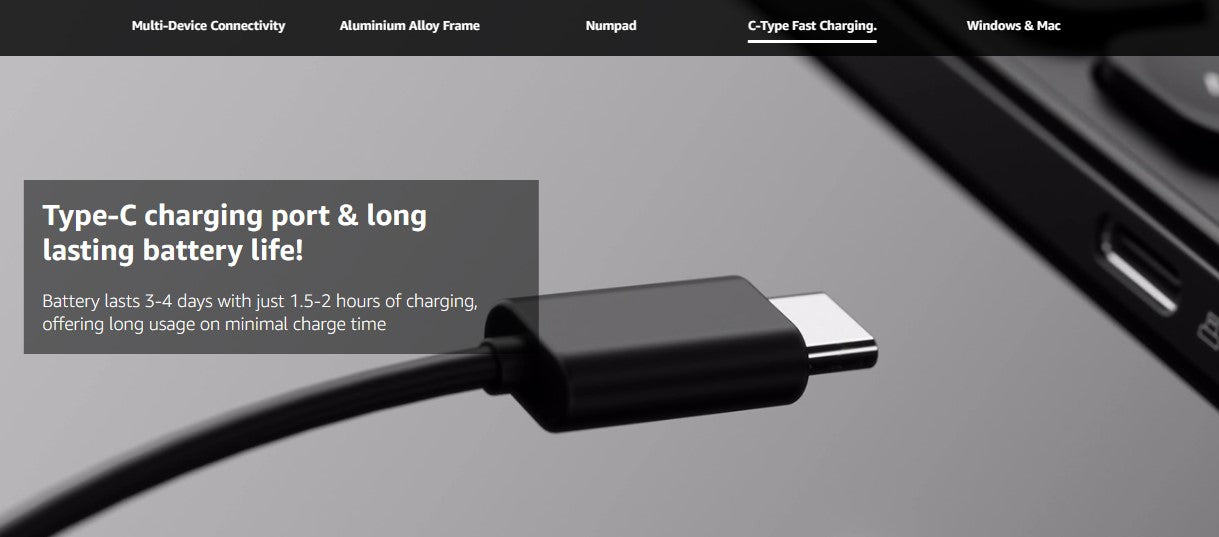 - Type C – Charging Port allows you to easy charge the devices within 1:15 hours to full charge
