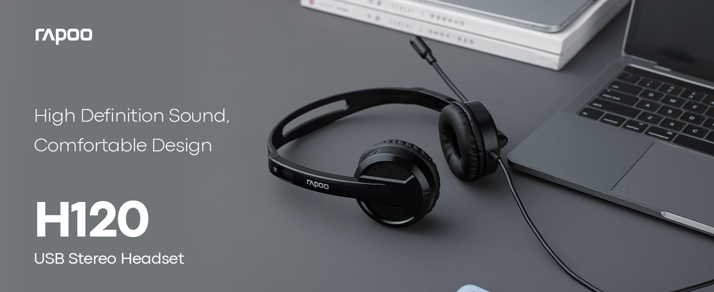 Rapoo H120 USB Wired Stereo Headset with Noise-Reduction Microphone, On-Ear Design, Inline Controls