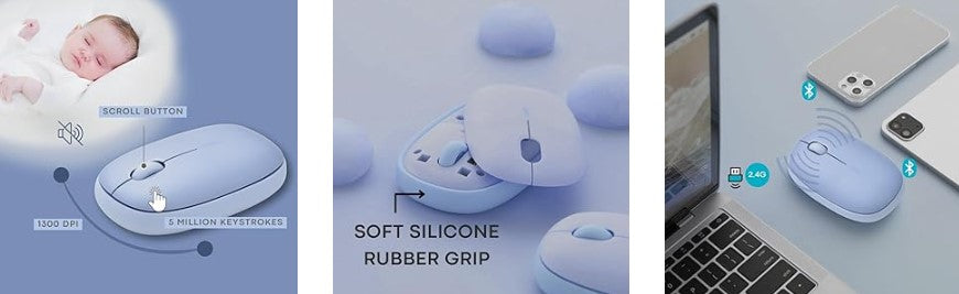 - Multi-device Wireless Bluetooth Mouse : Just short press switch button to quickly between 3 devices such as Windows computer and Android table without any restart pairing process or install any software. Bluetooth 3.0/ 5.0 modes and 2.4Ghz USB Dongle provide wireless and stable connection, working distance up to 10m. Very suitable for the one who need to use multi-device office